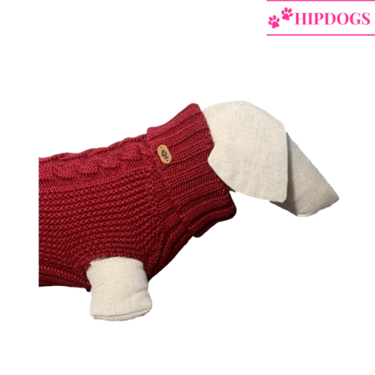 De mooie wijn rode teckel trui is gemaakt van Merino wol. Hiermee geschikt voor allergische honden, of honden met een gevoelige huid. De vezels van Merino wol zijn zachter en voorkomen jeuk.
