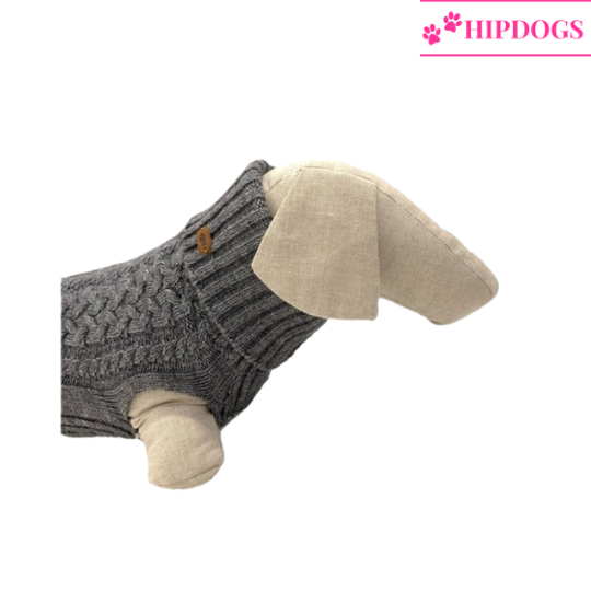 De mooie grijze kleurige teckel trui is gemaakt van Alpaca wol. Hiermee geschikt voor allergische honden, of honden met een gevoelige huid. De vezels van Alpaca wol zijn zacht en voorkomen jeuk.
