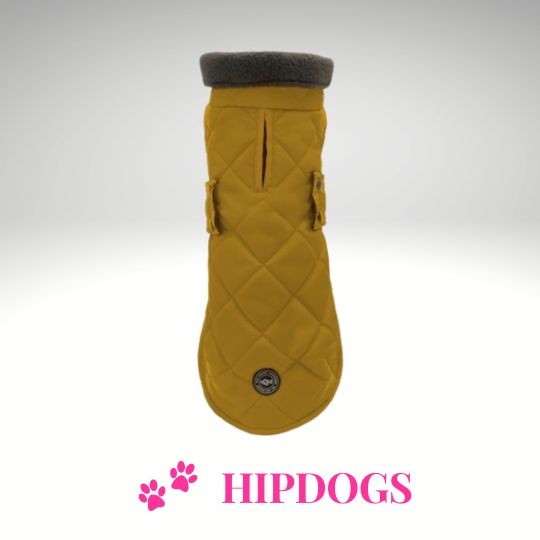 Gele gewatteerde Teckel jas, warme hondenjas voor langgerugde honden