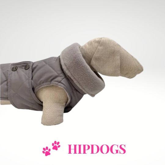 Grijze gewatteerde Teckel jas, warme hondenjas voor langgerugde honden
