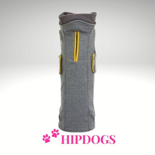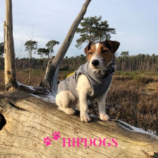 De opening voor het vastmaken van de riem aan het tuig of halsband, is voorzien van een rits. De jas heeft reflecterende accenten voor extra veiligheid en zichtbaarheid op de donkere avonden (of ochtenden).